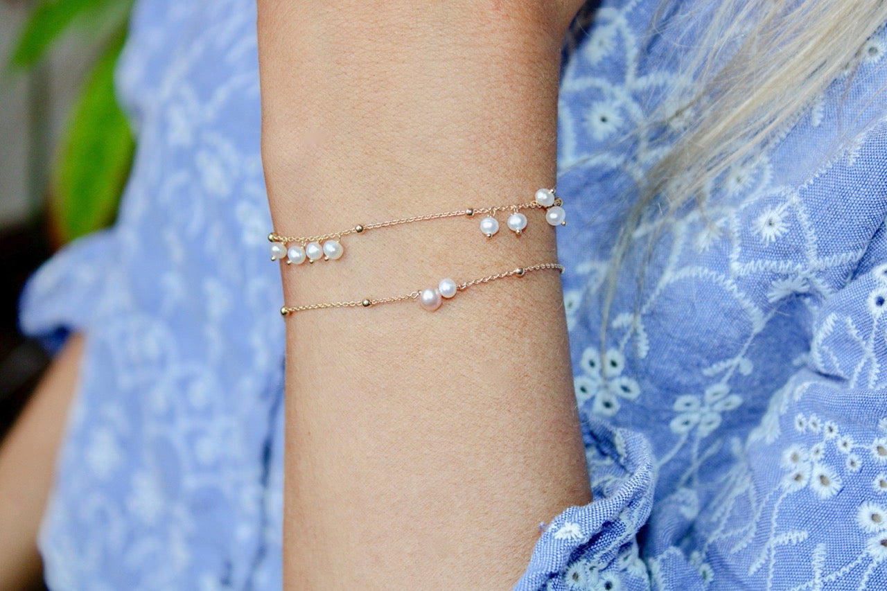Prachtig geboortesteen armbandje met natuurlijke witte parels. Het armbandje hoort bij de geboortemaand juni en sterrenbeeld tweelingen.
